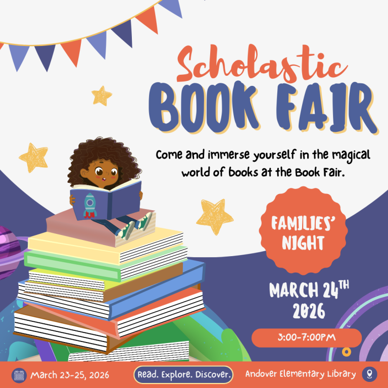 Andover Elementary School’s spring book fair is being held March 23rd-25th, 2026.